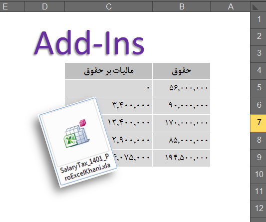 برچسبها: مالیات بر حقوق, تابع مالیات بر حقوق, اکسل, فرمول نویسی