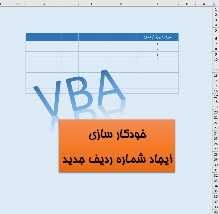 این مینی پروژه در اکسل، برای جداولی که لازم است شماره ردیف جدید ایجاد و درج شود(با هر تعداد کاراکتر و هر نوع چیدمان شماره) مورد استفاده قرار می گیرد و با کدنویسی در بخش VBA انجام شده و می توانید کد را از فایل قابل دانلود به پروژه تان منتقل کنید و با تغییر مراجع ها و روش شماره بندی متناسب با پروژه تان استفاده کنید.